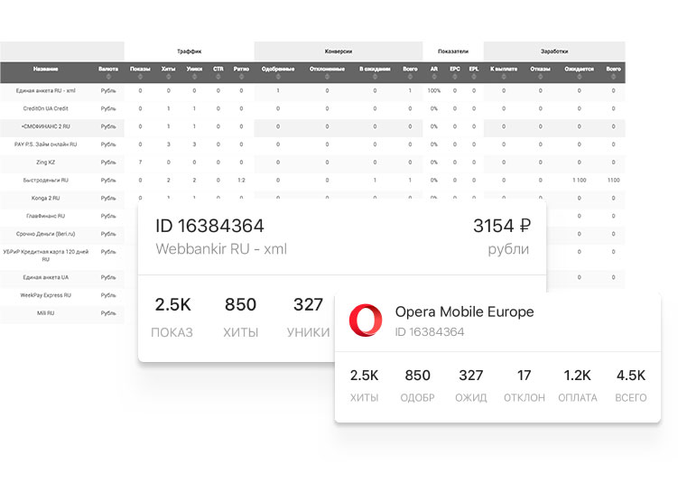 Предоставить поставщику трафика в любое время и в любом месте удобный и простой доступ ко всем статистическим данным, отражающим эффективность его деятельности по привлечению целевого трафика и отчетность о проведенных транзакциях.