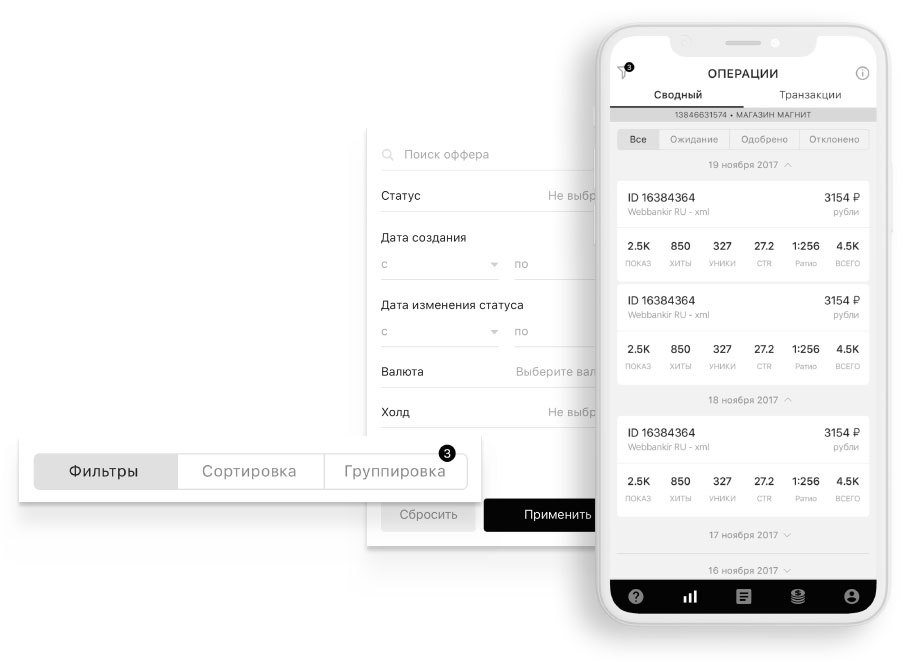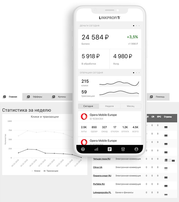 Личный кабинет поставщика трафика партнерской сети. Мобильное приложение для iOS и Android