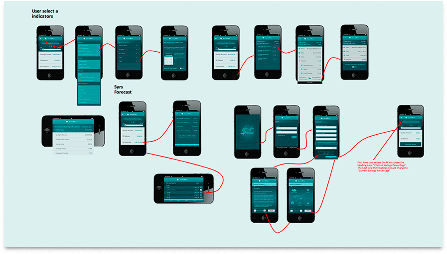 Перед стартом разработки было сделано несколько десятков клик-путей приложения. Это позволило избежать недопонимания между клиентом и разработчиками, а также ускорить разработку за счет доступности и логичности описания бизнес-логики.