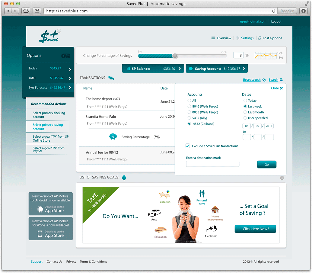 Система была открыта широкой аудитории в начале 2013 года и сразу начала уверенно наращивать клиентскую базу. Всё время после релиза система продолжала совершенствоваться, а ее мобильный и веб клиенты обновляться, всё больше и больше оптимизируя взаимодействия пользователей с системой. Уже осенью SavedPlus показал внушительные 250 000$ прибыли и имел большой успех на конференции инноваций в области финансов — FinovateFall 2013.