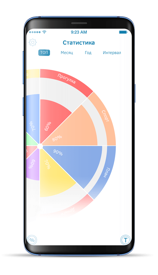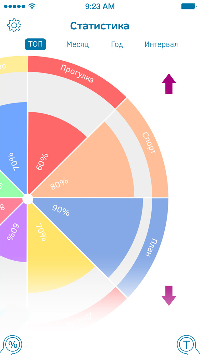 В итоге ты сможешь увидеть, на какую из сфер жизни стоит обратить внимание. Перейдя в раздел Статистика и посмотри динамику развития того или иного сектора Колеса.